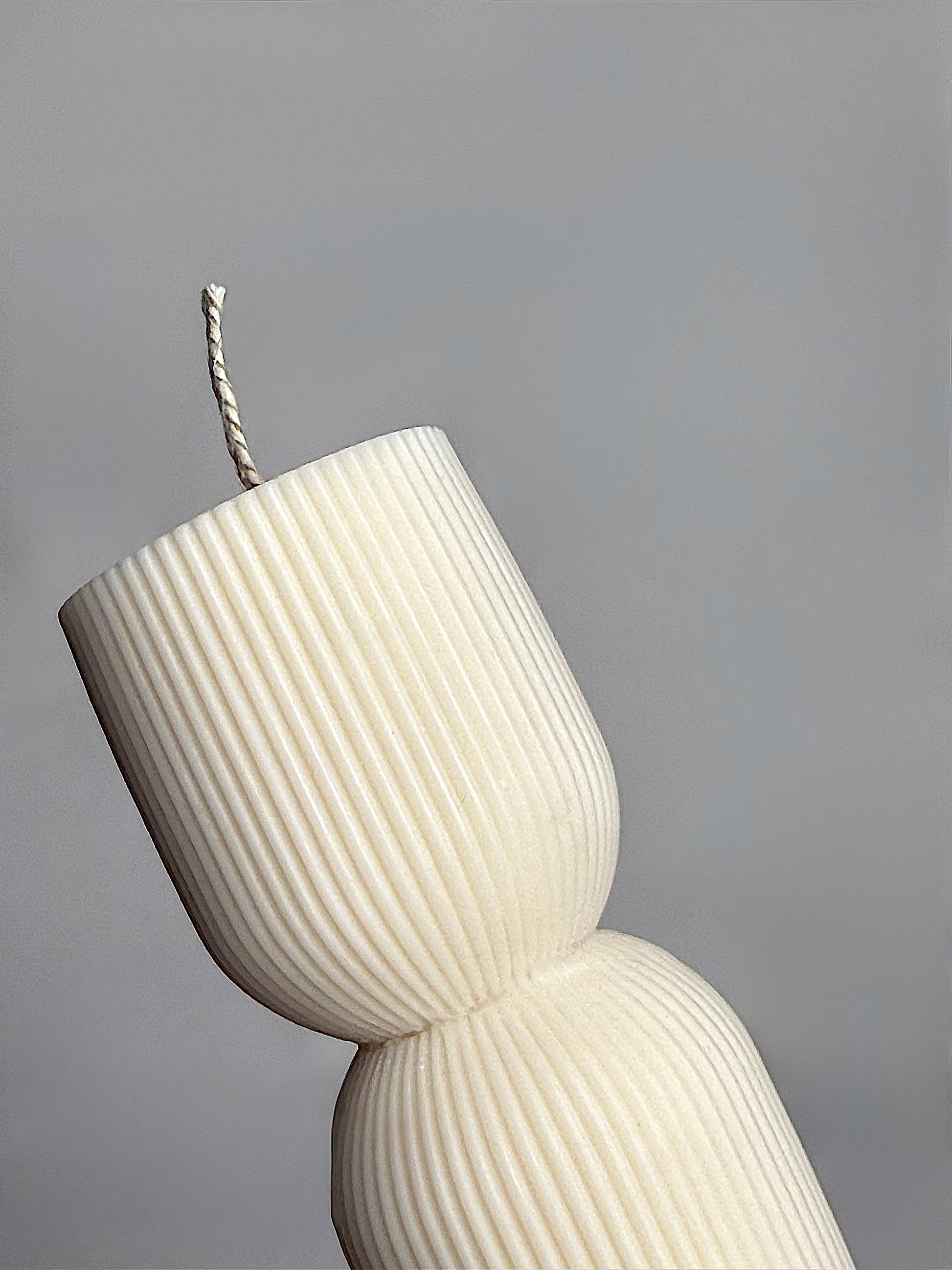 Is a candle shaped by harmony. Its dual silhouette, refined by vertical lines, evokes the grace of balance and the purity of symmetry. Minimalist yet sculptural, it stands as both an object of design and a symbol of calm strength. When lit, Houra radiates a serene glow, transforming structure into stillness — a timeless presence of light and balance.